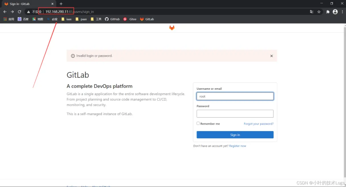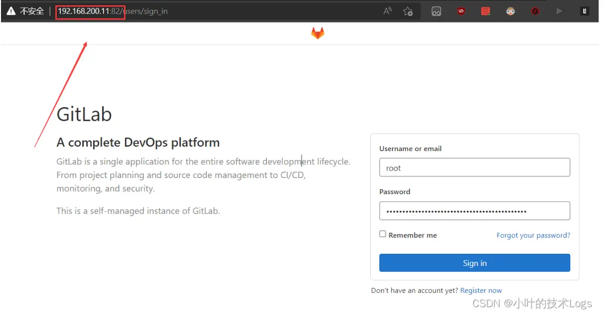 • 启动容器后,浏览器访问gitlab.admin.com:81,这里如果域名没做hosts映射的话,请使用ip地址:192.168.200.11:81
