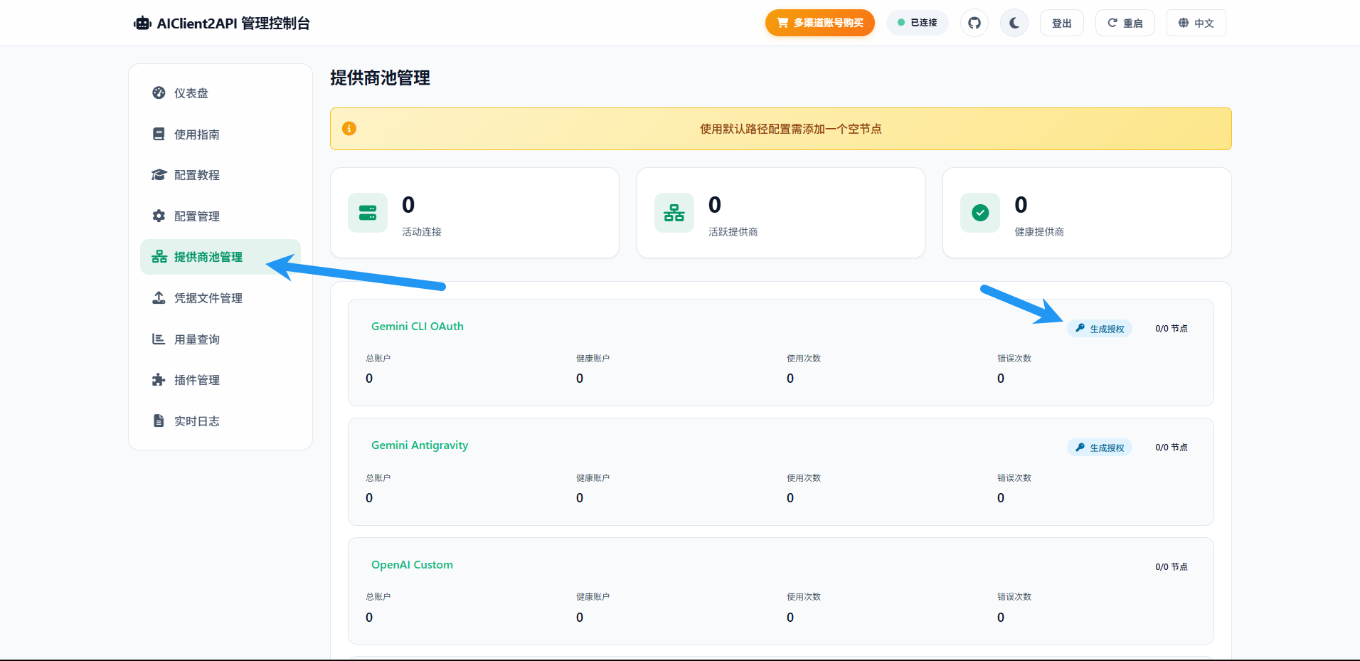 点击提供商池管理,点击生成授权