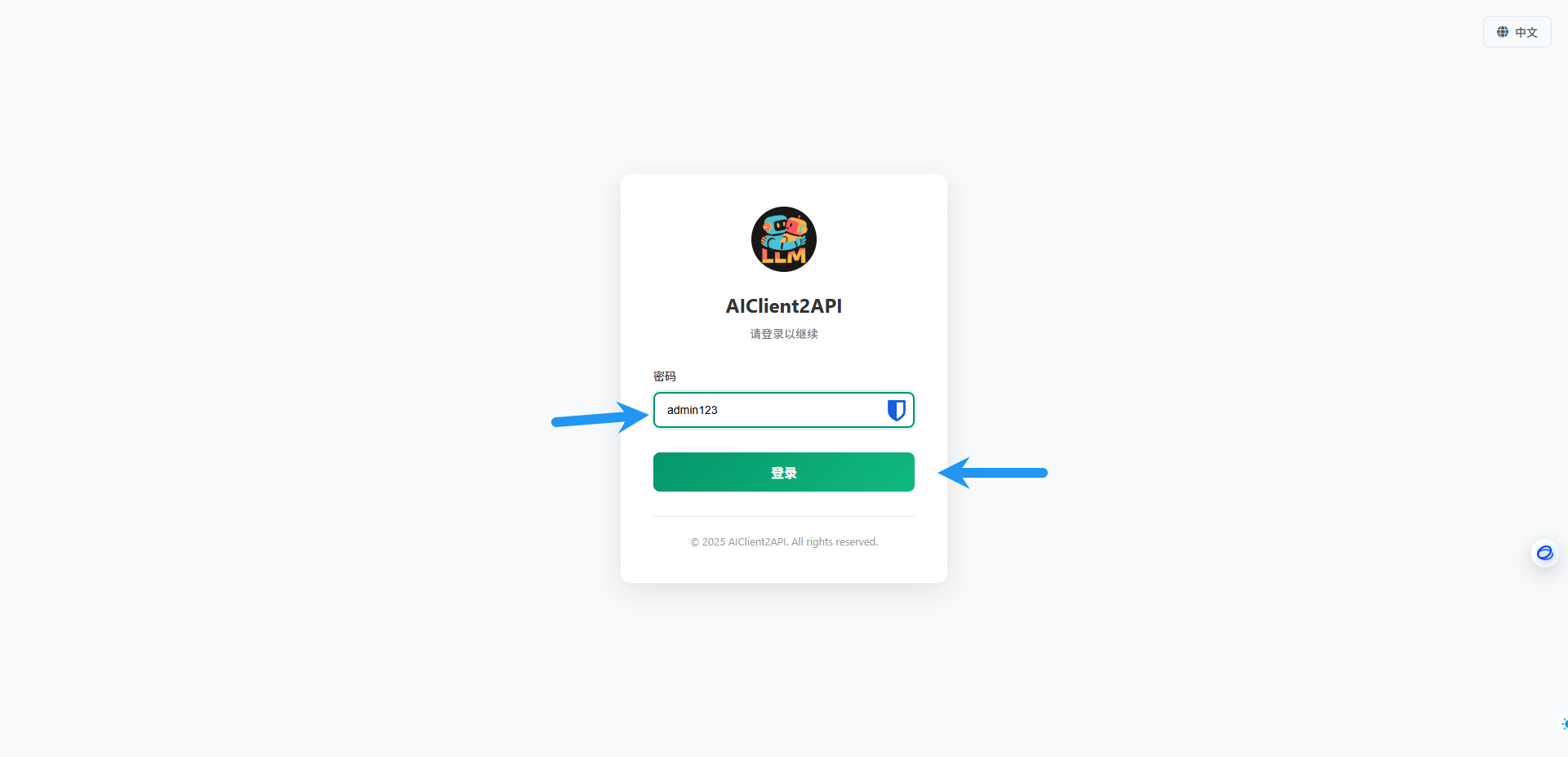 访问 服务器IP:3180 (如果你修改了端口则替换为你的端口),初始密码为 admin123 ,点击登录
