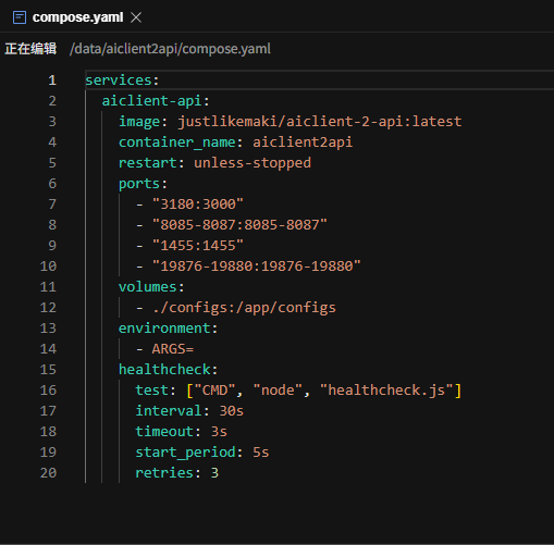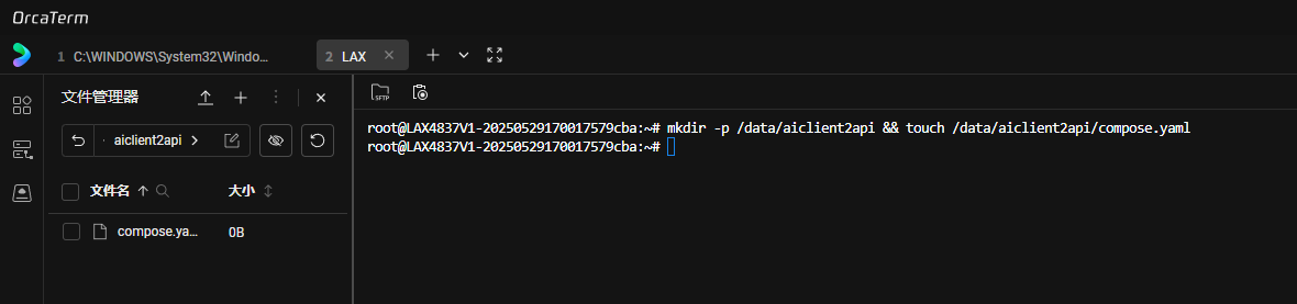 运行 mkdir -p /data/aiclient2api && touch /data/aiclient2api/compose.yaml ,创建docker compose文件
