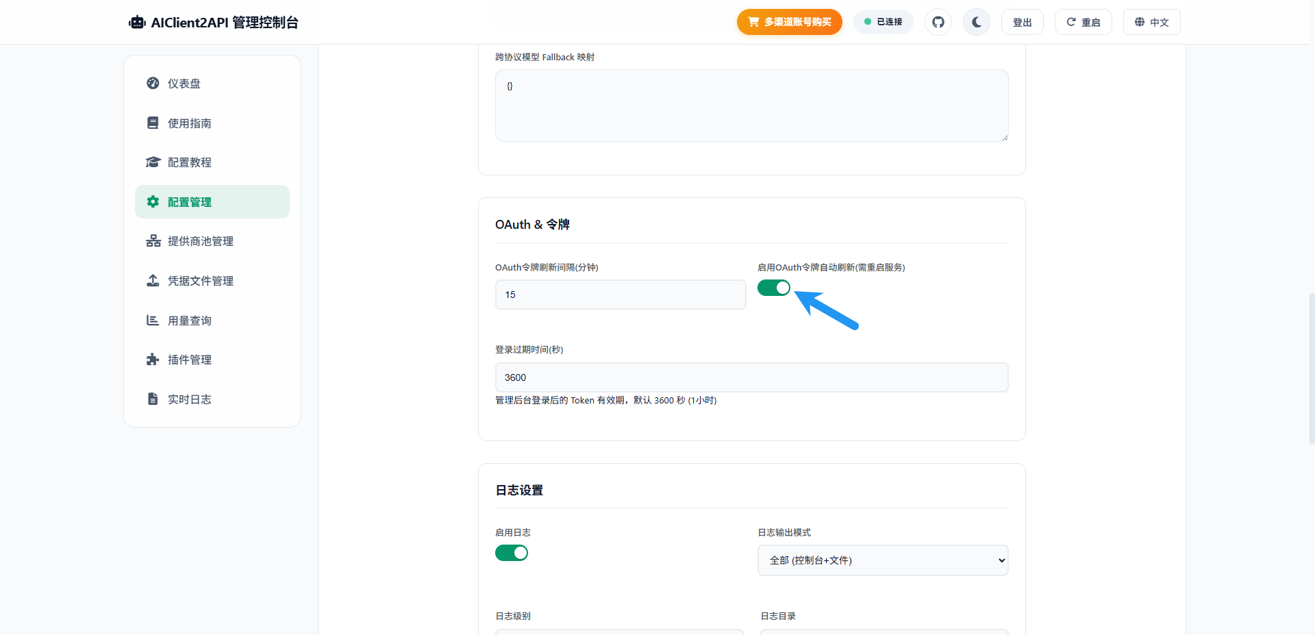 下拉到此处,启用OAuth令牌自动刷新