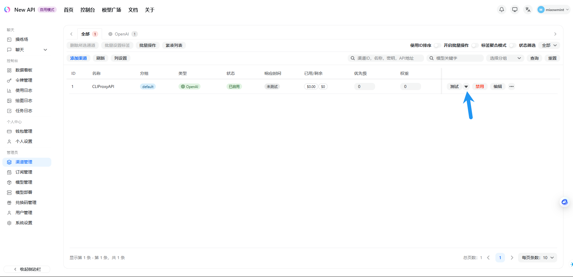 可以点击这个小箭头,再点击批量测试,就能看到选择的模型是否能使用了