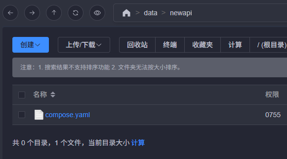 首先选择一个目录,本文中使用的是 /data/newapi ,先在该目录下创建 compose.yaml 文件