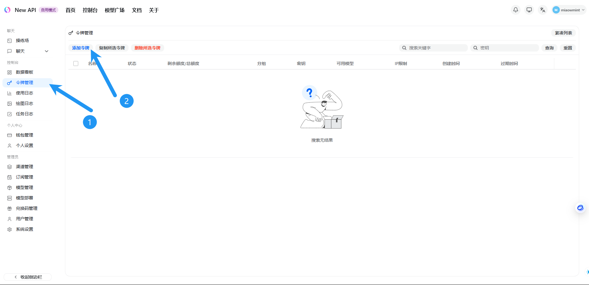 可以看到我们刚刚添加的令牌,点击密钥处可以查看或复制 API 密钥